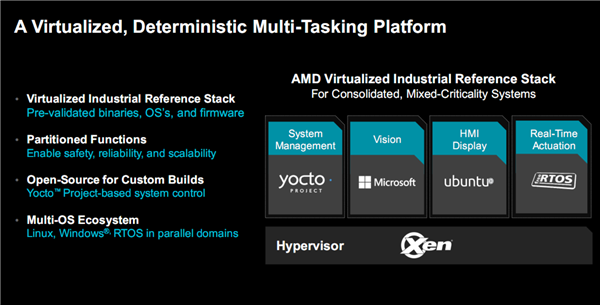 值得一提的是,AMD还为工业领域的混合关键型应用,提供了一个封装式、垂直整合的虚拟参考堆栈。