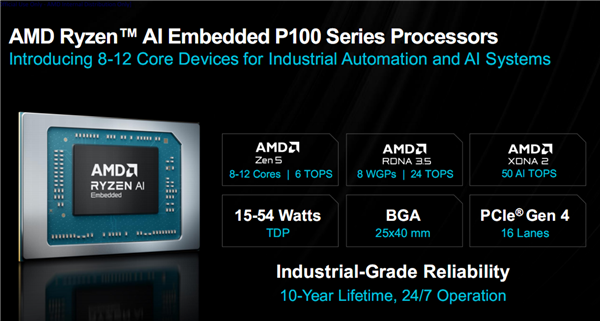 年初,AMD发布了新一代嵌入式处理器“锐龙AI嵌入式P100系列”,首次将锐龙嵌入式产品带入AI时代。