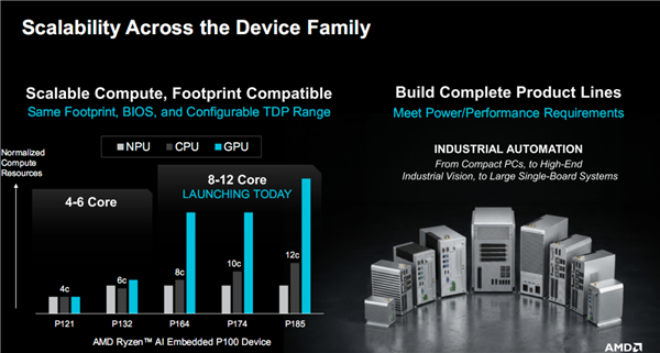 如前所述,整个锐龙AI嵌入式P100系列家族,无论是4-6个核心,还是8-12个核心,差别只在于规格和性能高低不同,架构、封装、BIOS、功耗、兼容性等等都是完全相通的,因此具备极强的灵活性。
